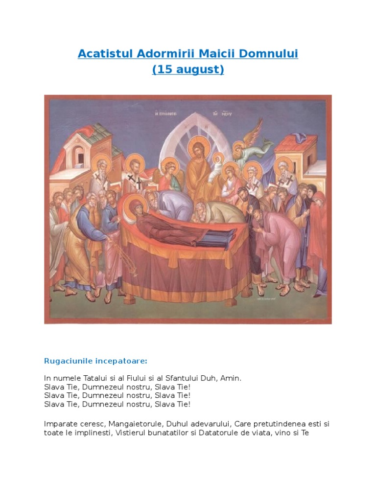 Acatistul Adormirii Maicii Domnului 15 August Rugaciunile Incepatoare