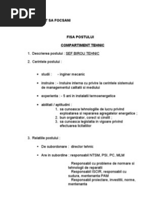 Fisa Post Lacatus Mecanic