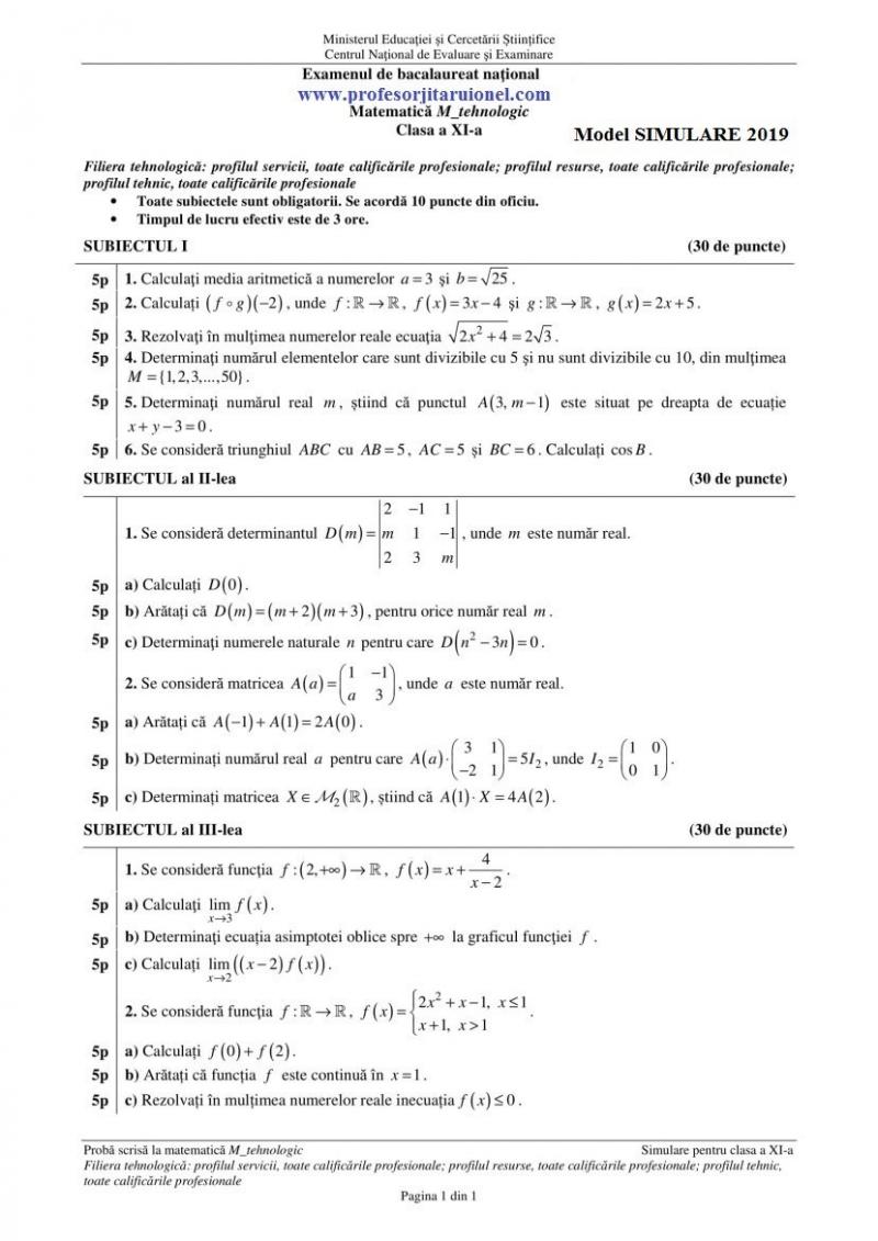 Simulare Matematică Bac 2019 Avem Subiectele Ce A Picat La Clasa 11 Antena 1