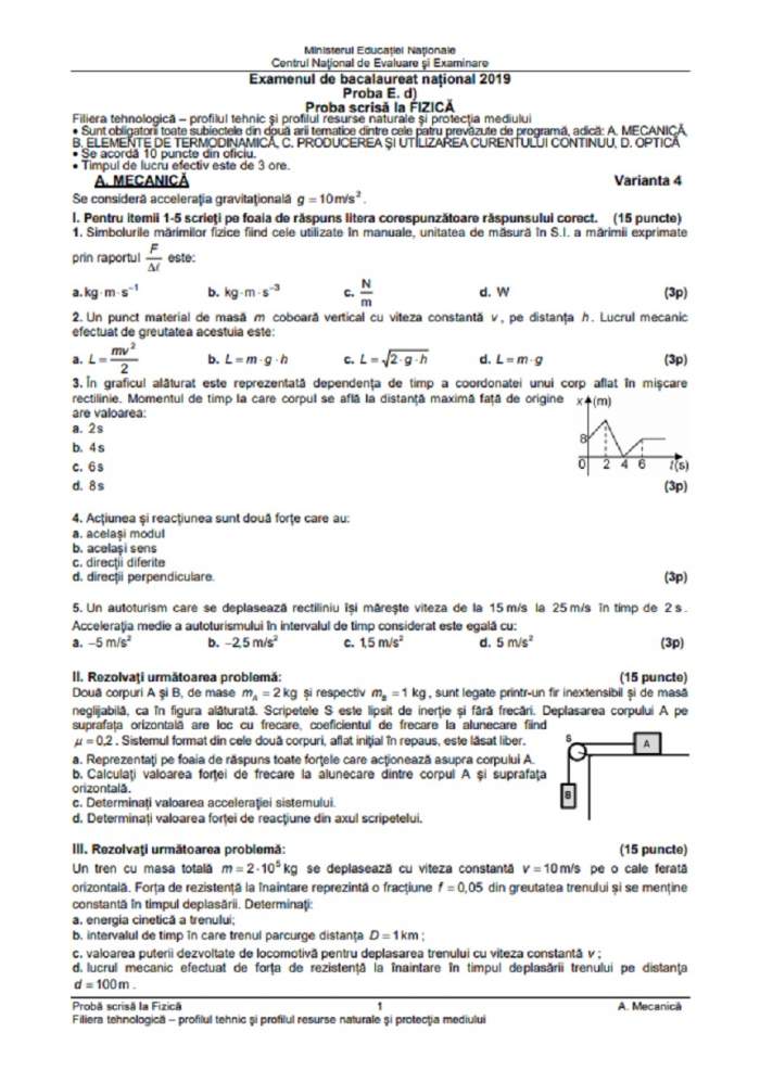 Bacalaureat 2019 Ce Subiecte Au Picat La Fizică Foto