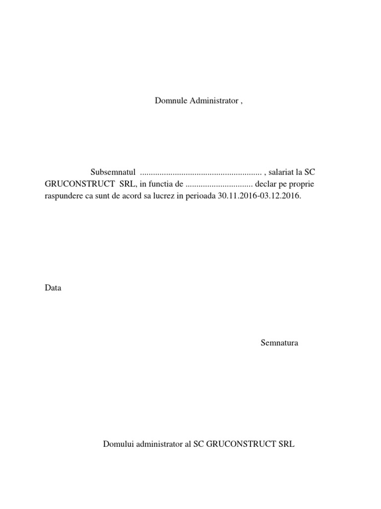 Model Cerere De Concediu Fara Plata 2018