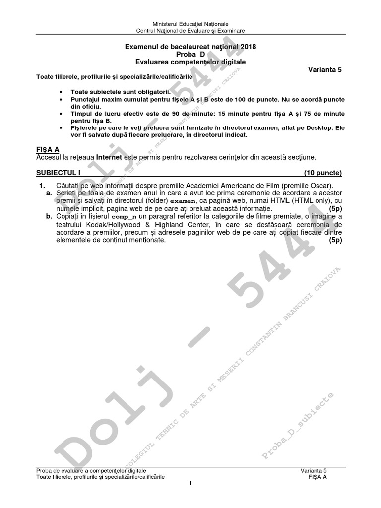 Bacalaureat 2019 Ce Subiecte Au Picat La Proba De Evaluare A Competențelor Digitale Vezi Pdf Impact