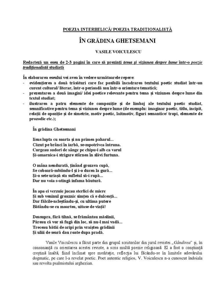 Referat In Gradina Ghetsemani De Vasile Voiculescu 334234 Graduo