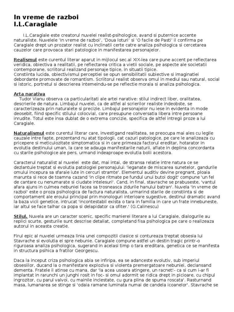 I în sfârşit ceata de tâlhari căzuse prinsă în capătul pădurii dobrenilor. Alături de ioan slavici ion luca caragiale este creatorul nuvelei realist psihologice deosebindu se de acesta nu numai prin tematica abordată ci mai ales prin capacitatea artistică de a insera în firul epic principiile estetice. Nuvela psihologica în vreme de război de ion luca caragiale nuvelă psihologică de factură naturalistă alături de ioan slavici ion luca caragiale este creatorul nuvelei realist psihologice nuvela în vreme de război de ion luca caragiale 1852 1912 a apărut în 1898 şi este o creaţie realist psihologică având şi puternice accente naturaliste.