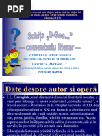 Alaturi de ioan slavici caragiale este in literatura noastra creatorul nuvelei realist psihologice. Nebunia apare ca element concluziv catastrofic. Cauzata de ticalosul popa iancu.